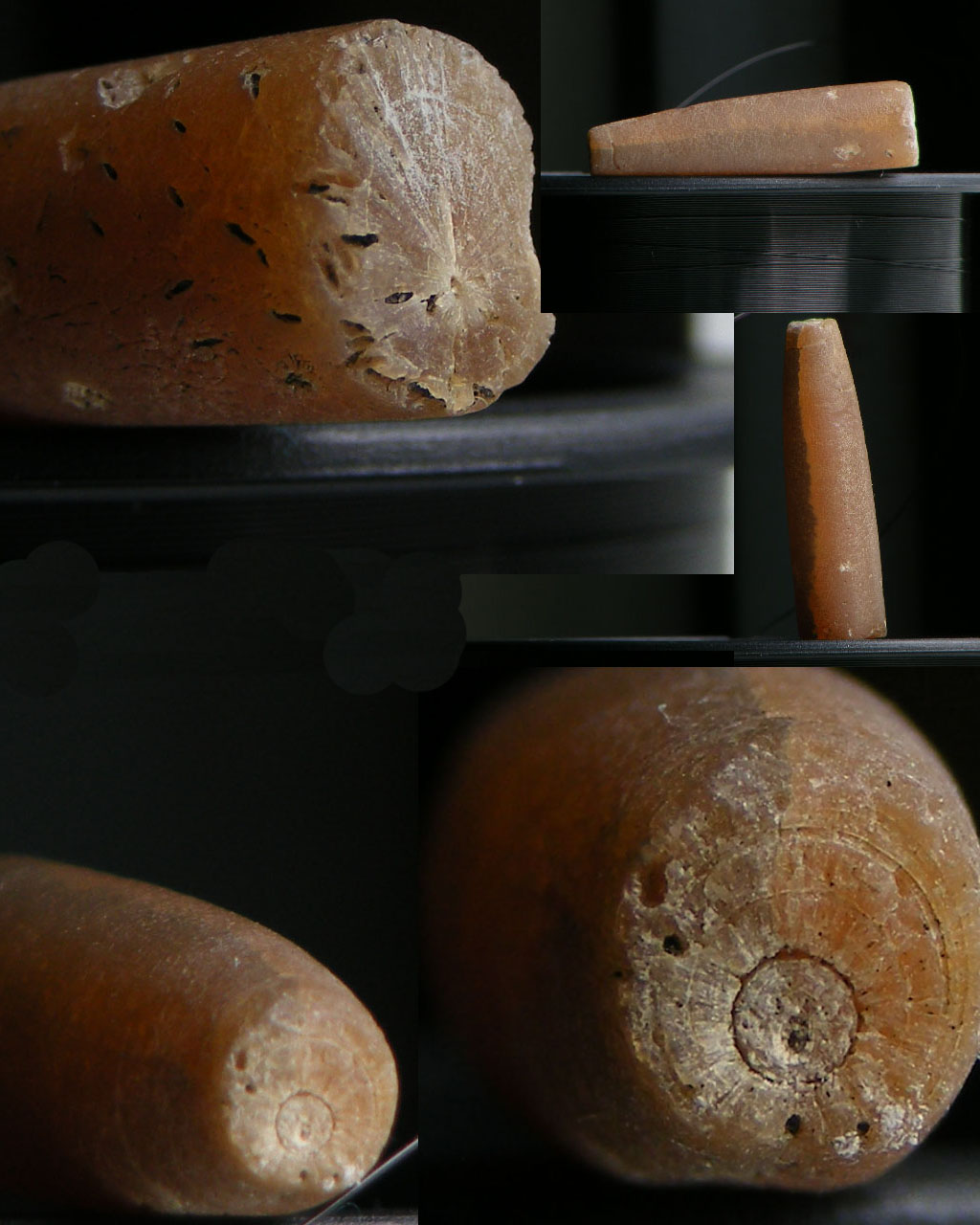таракан писал(а):есть мыслишка, возможно это - окаменевший побег тросника(или окрахмаленый). Нашел еще парочку остроконечных.