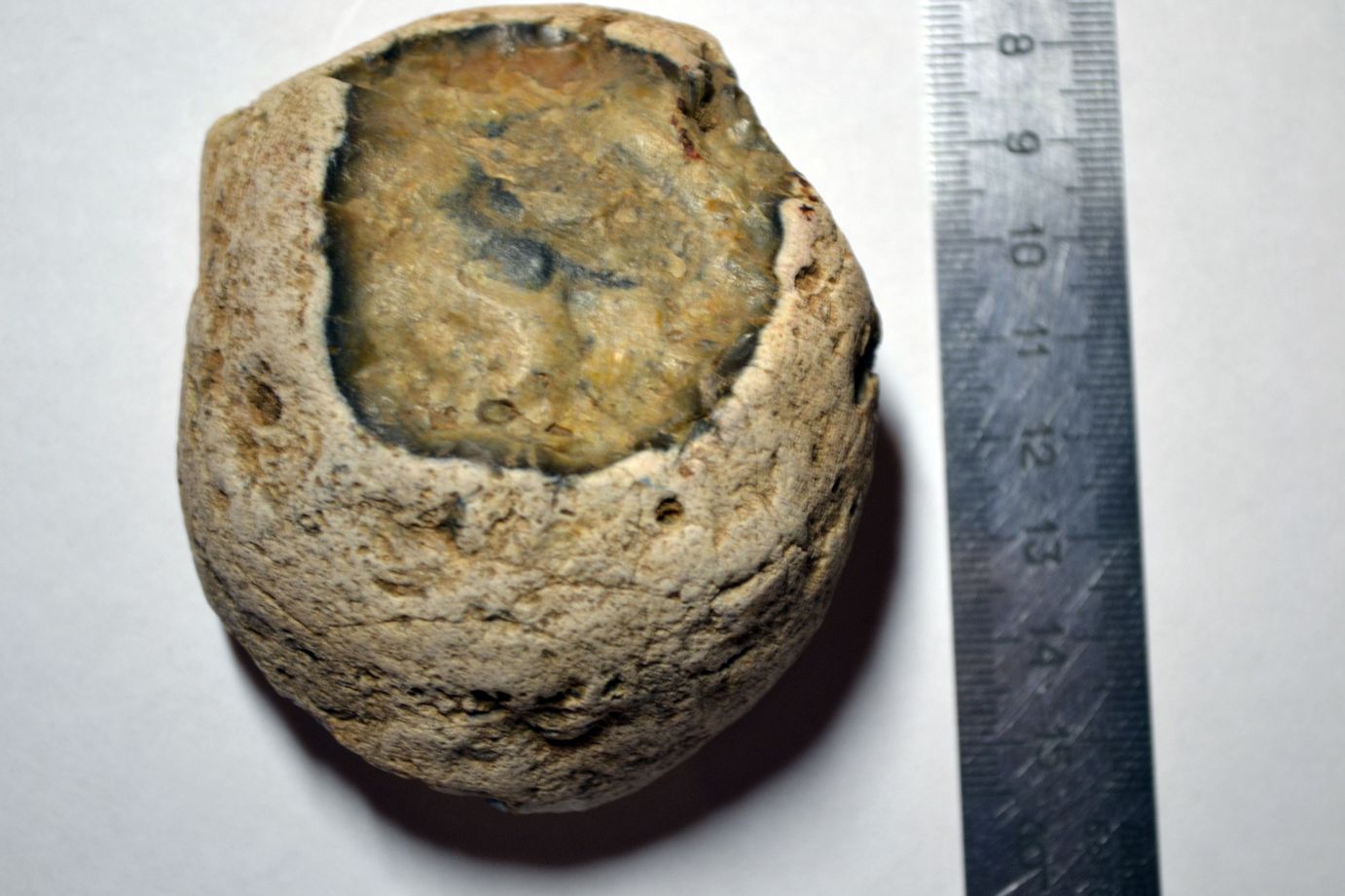 Проверьте твёрдость. Если внутренняя часть царапает стекло - это, скорее всего, кремень, заместивший известняк.