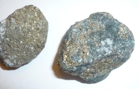 Слева - пирит. Справа, возможно - магнетитсодержащая порода.