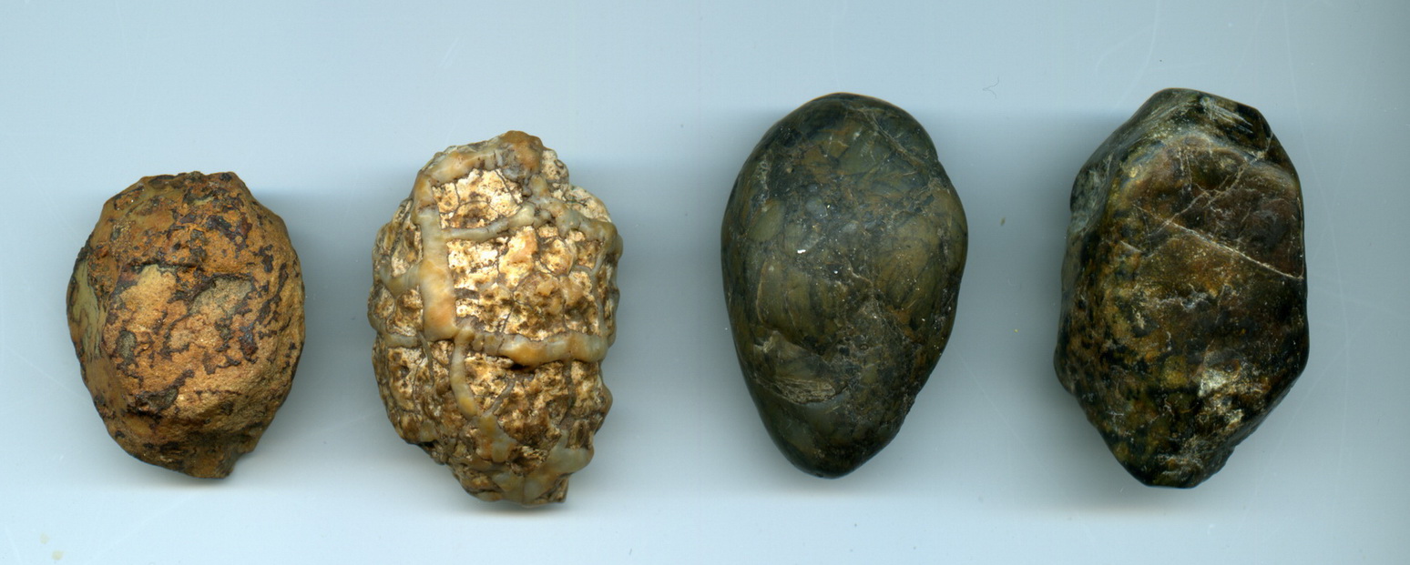 Всё напутала бестолково. Выбирала, исходя из того, что кремни мелкозернистые, твёрдые, с "чёрными" включениями, рисунчатые. Цвет может быть различным и коричневыми и др.. (3 и 4 с Крита).