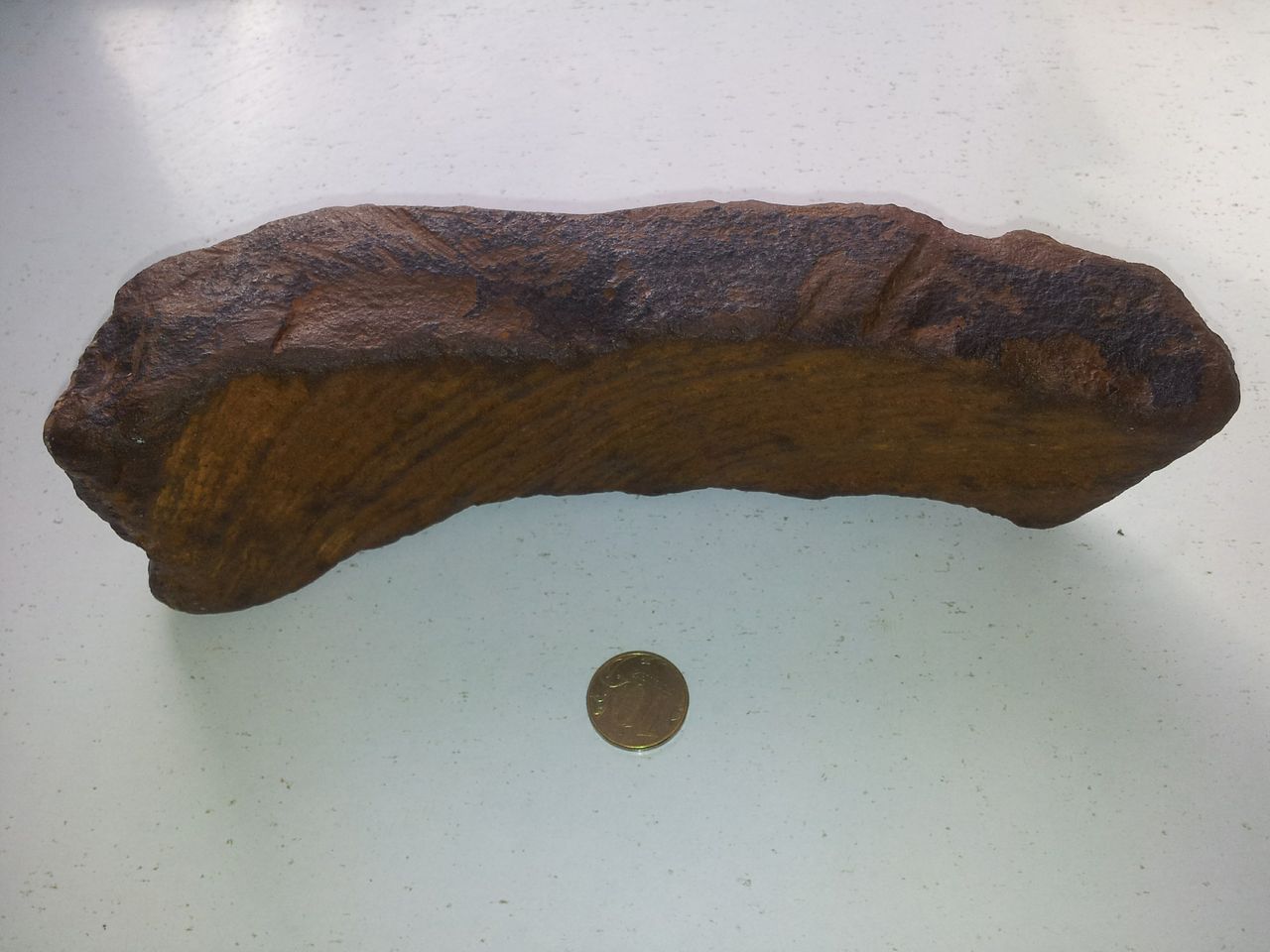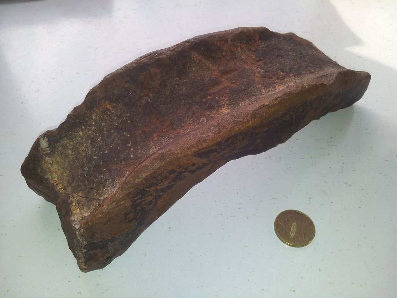 По плотности около глины, по краям имеется какой то черный налет, есть вкрапления напоминающие кремний. Найден на Урале, на глубине 2-5 метров