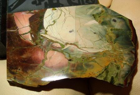 Все полировки кроме 8 и 9 - яшмы. 8 - офиокальцит, 9 - родонит на какой-т о ультраосновной породе или серпентините/змеевике. Весь камень, похоже, уральский