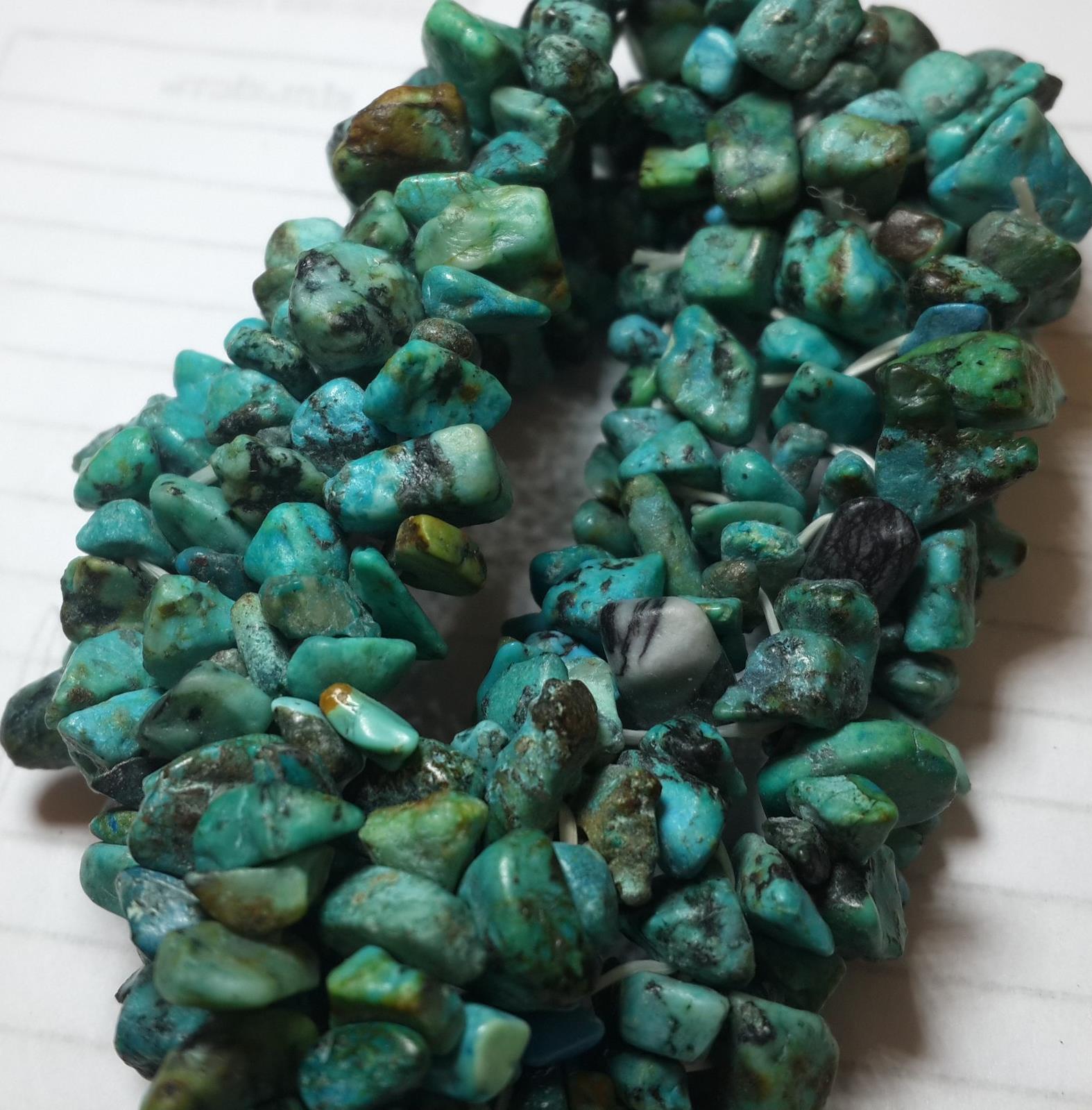 Я считаю, что это крашеный под бирюзу говлит. Хотя, действительно, похоже на низкосортную бирюзу (окраска камней различна - от голубой до зелёной). Распилите один камешек - будет нагляднее. Ну и цена. Бирюза никогда не бывает дешёвой - такие бусики из бирбзы должны стоить тысяч двадцать.