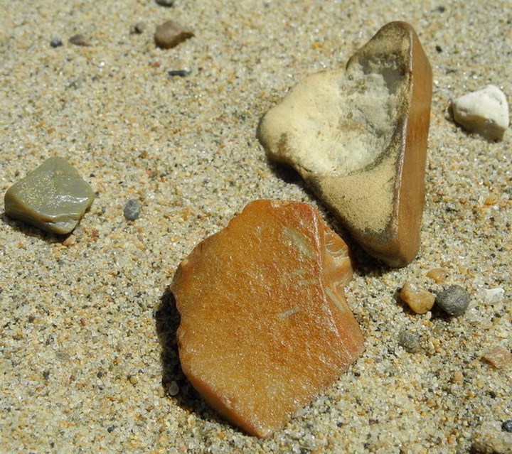 Уважаемые гуру форума. Если не трудно, представляю на обозрение мелкие камешки. Стало интересно узнать о них.. Тот что ближе желтовато-коричневому колеру, имеет такую гладкую и блестящую как будто лакированую поверхность. На втором фото - видно на другом похожем, под лакировкой оказывается беловатое нутро типо простые известняк ??