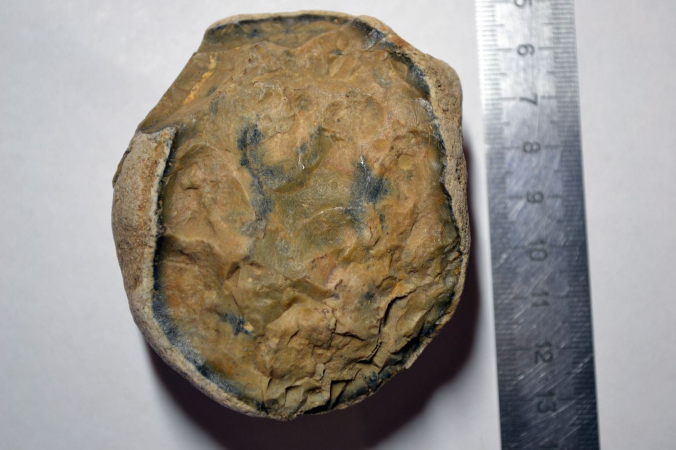 Проверьте твёрдость. Если внутренняя часть царапает стекло - это, скорее всего, кремень, заместивший известняк.