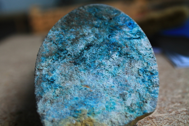 Собственно вопрос по теме. Мои коллеги утверждают что это может быть малахитом, хотя я на 100% уверен что это хризоколла.