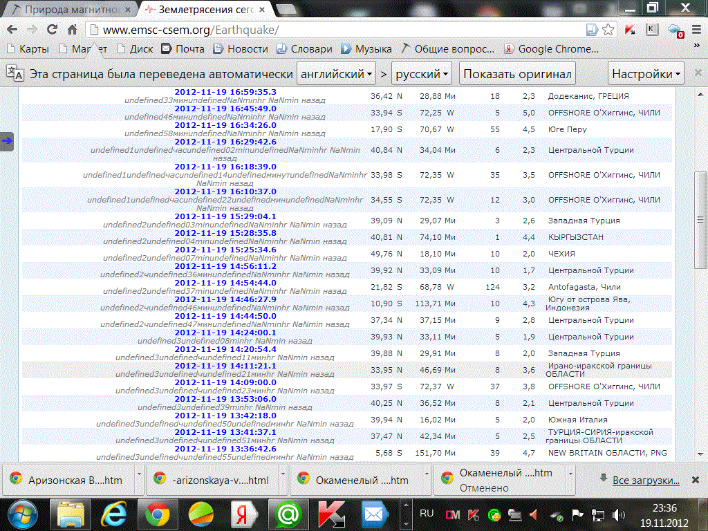 Я действительно случайно забрел на этот сайт. И первое что мне бросилось в глаза как рикошетом можно сказать избираются места следующих землетрясений. Но тем не менее систематика в этом какая то имеется. Я не имею возможности по времени отследить эту систему. Но может у кого достаточно желания и есть на это средство может заняться. Возможно за этой системой кроется и разгадка предсказательности землетрясений.