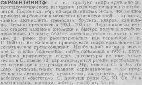 10. Павел Самородский писал(а):Согласно "Горной энциклопедии" - нет. Согласно Лодочникову - тоже нет. Поскольку при серпентинизации происходит изменение отношения содержаний магния и кремнезёма.