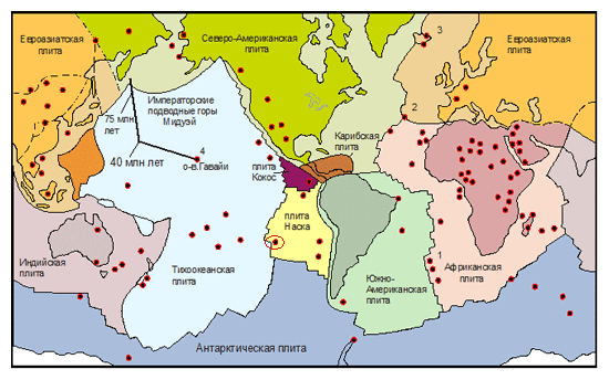 Ну не хорошо вводить людей в заблуждение. Я же Вас просил не называть районы "горячих точек", каким является Восточно Тихоокеанское поднятие. Привожу карту расположения горячих точек на Земле.