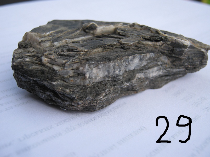 29 - действительно, похоже на сланец с прожилками кварца (твёрдость надо проверить).