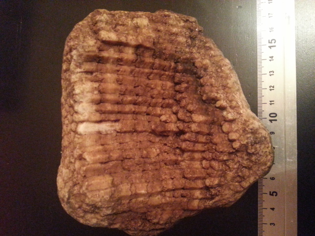 А чего делать кораллам в Смоленской области? Если ледником притащило то в северных морях по моему кораллов нет. Да и вроде не похоже на кораллы. Камень состоит из продолговатых шестигранников соедененных по вертикали конусными замками ну как папа-мама, а стенки шестигранников ребристые.