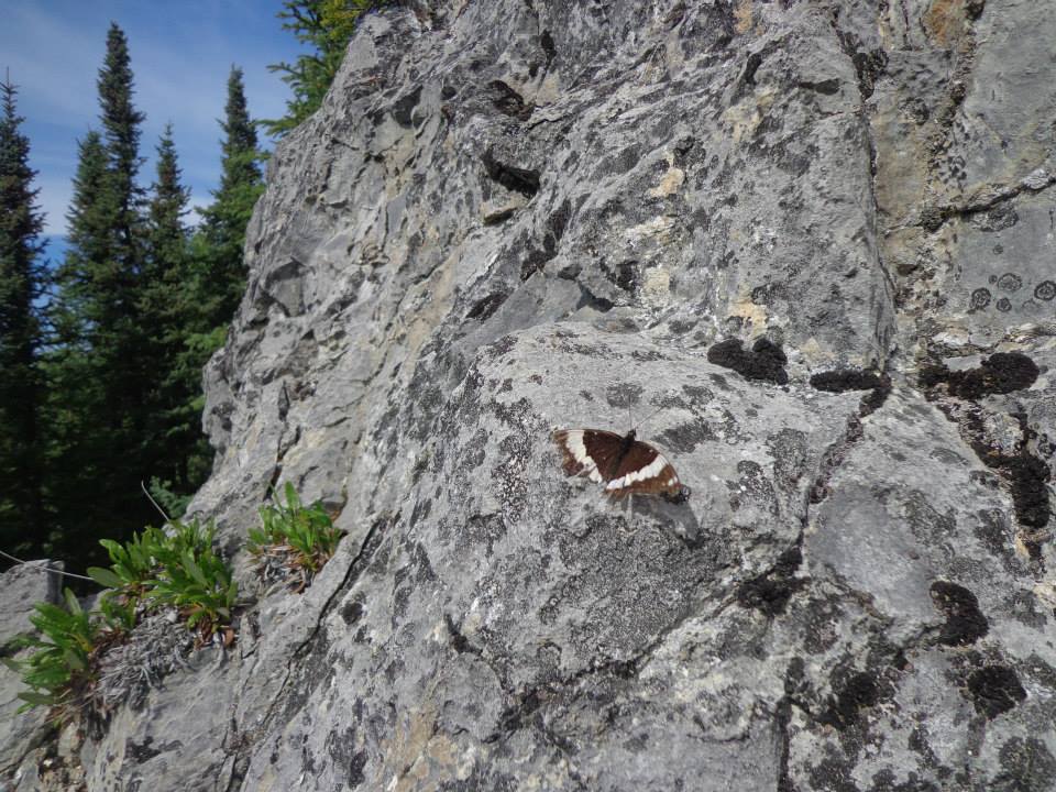 На одном - куски камня, покрытые, возможно, плёнкой минералов марганца, на другой - скалу, возможно, сложенную известняком.