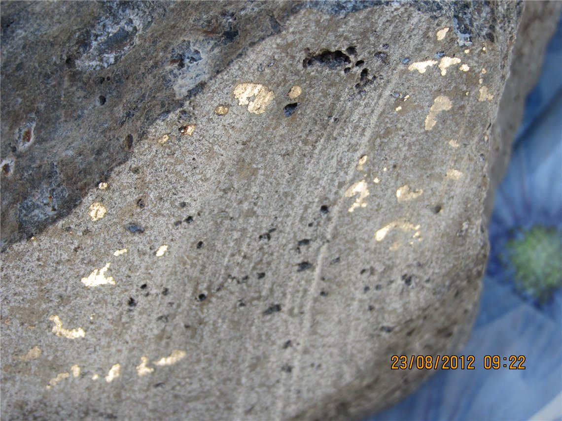 Похоже на базальт с миндалинами, выполненными сульфидами.